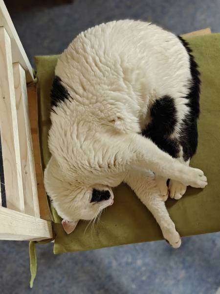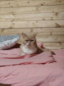 Второй кот Рори. Он обычный кот. С прикольной окраской. Он очень любит есть и когда я стучу его по пятну на спине.