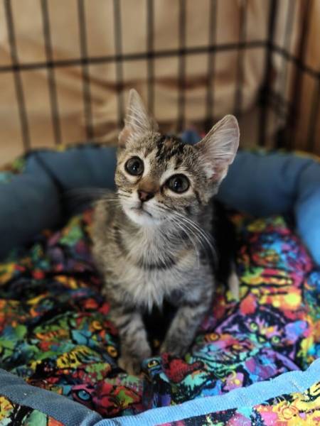 На фото Креветка (она скоро поедет в новый дом). У нее короткие и кривые лапки из-за генетического отклонения. Бессердечные уроды называют это породой манчкин. В целом она так и появилась на свет – скрещивали вот таких вот больных коротколапиков.