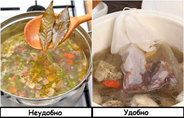 У процесі приготування супу ми часто використовуємо інгредієнти, які можуть залишатися в каструлі, але не повинні попадати в тарілку. Це перець горошком, лавровий лист, часник та ін. Полегшити собі життя можна за допомогою спеціального мішечка, в який ви складаєте спеції, потім опускаєте його в бульйон, а коли суп буде готовий – витягуєте та викидаєте. Також цей мішечок можна використовувати для заварювання чаю, щоб у кухоль не потрапляли чаїнки.