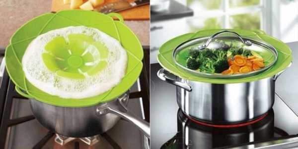 Найнудніше в процесі приготування – чекати, поки закипить вода в каструлі, а потім стежити, щоб вона не опинилася на плиті разом із овочами чи макаронами. Звичайно, можна по-старому покласти на каструлю лопатку, проте, як показує практика, це часто не діє. У зв'язку з цим пропонуємо скористатися спеціальною силіконовою кришкою. Як і в будь-якій іншій кришці, в ній є отвір посередині, через який виходить пара. Однак, є і відмінність – при кипінні вода не проливається за борти каструлі, а накопичується зверху. Така силіконова кришка має й інше призначення – її можна використовувати для приготування овочів на пару.