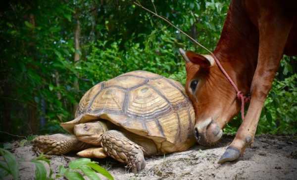 Найкращі друзі: гігантська черепаха і теля, що втратило лапу