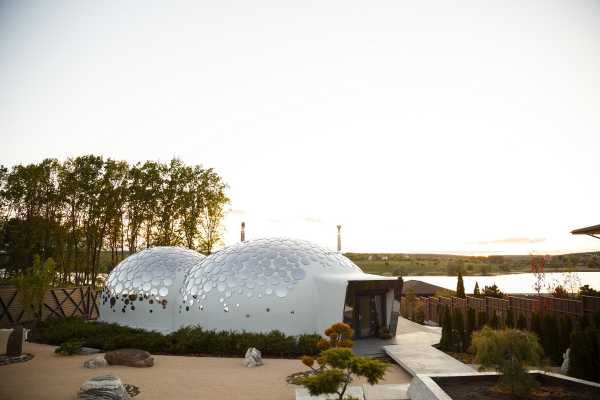 Весь незвичайний житловий особняк з'явився цього року під Харковом. Будівля, спроектована дизайнером Наталією Теличенко, являє собою дві зблоковані півкулі, що нагадують бульбашки. Житлова площа об'єкту становила 100 кв. м. Через криволінійну форму всередині немає прямих кутів – всі стіни вигнуті.…