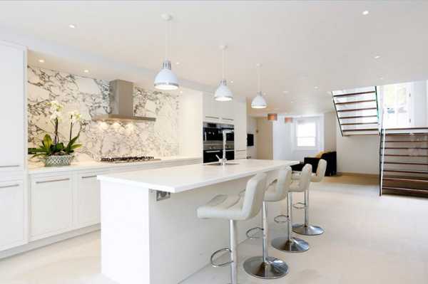 Найчастіше кухню оформляють у світлих, переважно білих тонах, тому в ній просто необхідно щось особливе, наприклад, сяючий кухонний фартух з мармуру. Він завжди модний, популярний і до того ж практичний. Чудово пишеться в інтер'єр сучасної розкішної кухні.