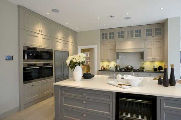 Щоб надати кухні сучасний і витончений вигляд, необхідно оптимізувати систему зберігання всього кухонного начиння. Для цього чудово підійдуть шафки під саму стелю. До того ж, вони допоможуть створити більш упорядкований вигляд і допоможуть сховати навіть ті предмети, які використовуються дуже рідко. Витонченості можна додати за допомогою застеляних дверцят шафок.