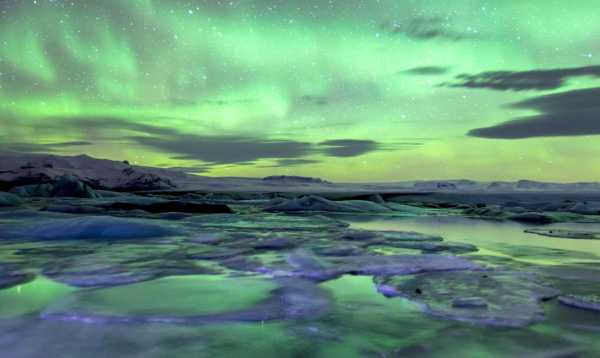 Льодовик біля озера Йокюльсадлон і заморожений пляж, що знаходиться неподалік, по-праву вважаються одними з головних чудес країни. Чорний вулканічний пісок протиставлений крижаним брилам, білою облямівкою, що охоплює весь берег. І, просто для того, щоб вечір перестав бути важким — все це відображає північне сяйво, що розкинулося в небі.