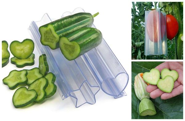 На жаль, не всім і не завжди вдаються експерименти із садовою екзотикою. Однак з такими формами екзотику можна отримати навіть зі звичних овочів та фруктів. Вся справа в тому, що зав'язі, розвиваючись усередині насадок, поступово набувають їхньої форми. Нарізка з таких овочів виглядає приголомшливо!