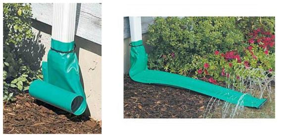 Веселий дощ стукає по даху, а голова садівника зайнята думками про те, щоб не втратити безцінну вологу. Щоб вода не пішла під будинок, розмиваючи грунт та підтоплюючи фундамент, на ринву надягають спеціальний вініловий рукав. У ньому десятки дірочок відводять воду повільно та за адресою. У домашніх умовах для виготовлення такого рукава можна використовувати щільну плівку, яка добре клеїться.