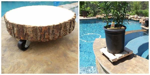 Великі квіти у контейнерах зручно розміщувати на мобільних підставках із коліщатками. Це дозволить переміщати їх ділянкою без особливих зусиль. Крім того, ви легко зможете створювати садові композиції, про які раніше не мріяли. Варіанти для створення таких підставок у домашніх умовах представлені на фото.