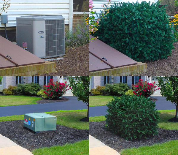 Блок від кондиціонера, підвальна витяжка та інші непривабливі предмети можуть зіпсувати вигляд навіть добре облаштованої ділянки. Сховати їх легко під такими чагарниками, що сплетені зі штучних гілочок. Маскування просто відмінне: і техніці добре, і оку приємно. Необхідні для маскувальних кущів елементи можна підібрати в магазині декоративних речей для саду.