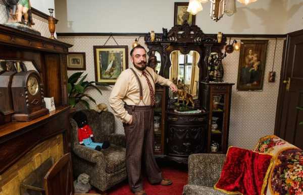 Зовні будинок 36-річного британця Аарона Уайтсайда виглядає цілком звичайно, але якщо переступити поріг, то поринаєш у довоєнну епоху 30-х років минулого століття. Всі предмети в будинку меблі, камін, радіола, пилосос, м'ясорубка, газові лампи та кухонне начиння оригінали, що коштували чималих грошей. Щоб відповідати духу улюблених ним з дитинства 30-х років, Аарон носить вінтажний одяг, стрижеться і оформляє вуса і бороду за модою того часу, і харчується по-старому.