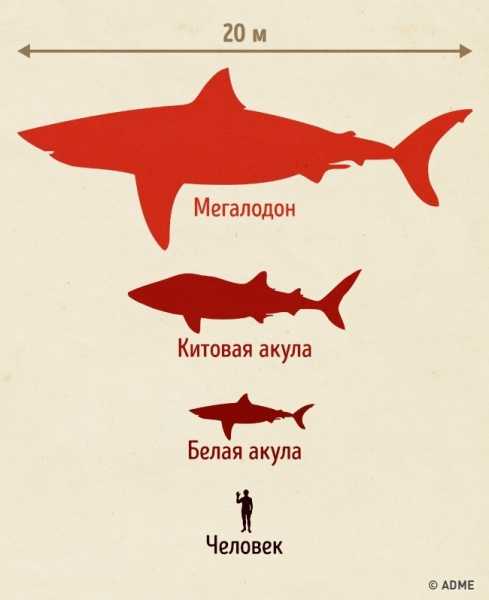 Найбільша акула у світі – мегалодон – борознила глибини океанів близько 28 млн років тому. Мегалодон був справжнім царем підводного світу, сягав 16 метрів завдовжки і важив приблизно 47 тонн.