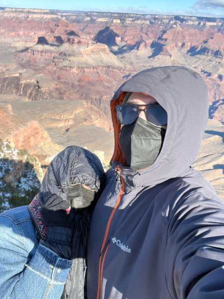 У Гранд-Каньоні було настільки холодно та вітряно, що наше фото виглядає так