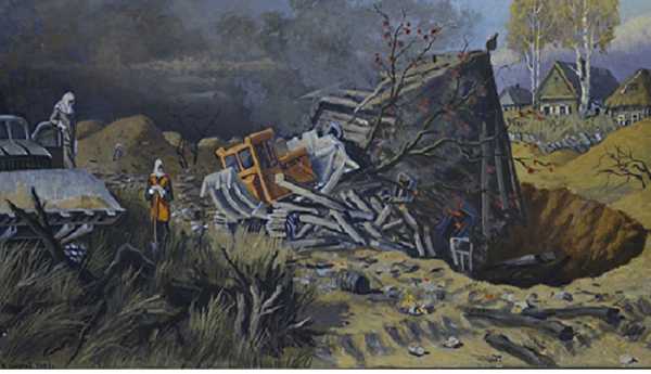 «Похорон у Чорнобильській зоні». Художник Віктор Шматов.