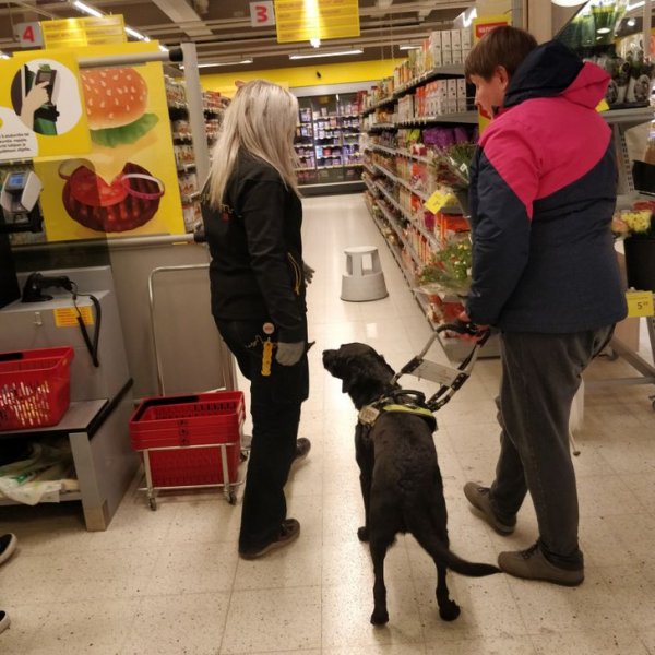 У фінських магазинах продавці допомагають сліпим робити покупки.