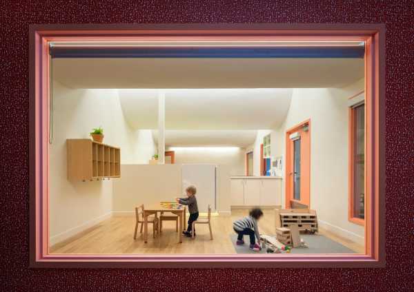 Дитячий освітній центр SolBe у передмісті Бостона, Массачусетс, США спроектований архітектурним бюро Supernormal. Автори проекту переосмислили традиційні простори ясел та дитячого садка, створивши цікавий об'єкт зі скульптурними об'ємами в яскравих шпалерах та відкритими ігровими майданчиками з природним освітленням.
