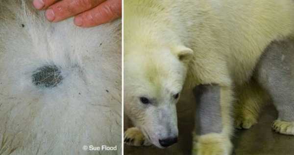 Якщо запитати будь-яку людину про колір полярних ведмедів, то відповідь буде одна – «біла». Але правда, що білі ведмеді зовсім не білі. Вони мають прозору шерсть, а під нею чорну шкіру. Те, що здається білим, насправді оптична ілюзія, яка з'являється завдяки шерсті. Хутро полярного ведмедя складається з двох шарів волосся. Один шар захисний і складається з волосся довжиною від 5 до 15 см, а інший шар товщі і складається з більш короткого волосся. Захисний шар прозорий – він відображає сонячне проміння, яке на нього падає, через що і з'являється білий колір. Така здатність ведмедів допомагає їм зливатися з навколишнім сніжним середовищем. А ось чорна шкіра дозволяє білим ведмедям зберігати тепло.