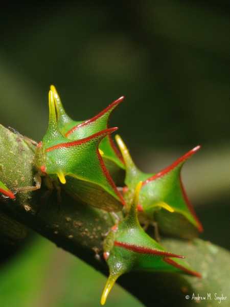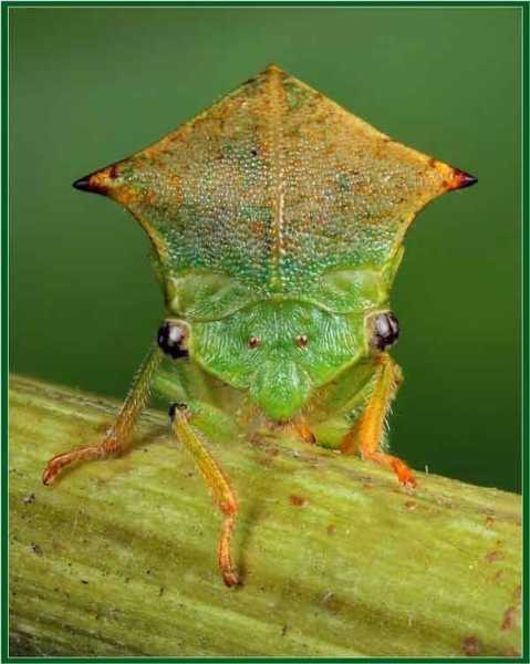 Це невеликі комахи характерною рисою яких є вирости неймовірної форми, розташовані на спинці. Вони можуть бути у вигляді рогів, гребенів, куль, шипів, ріжків тощо. Ці «конструкції» часом перевершують розміри самого горбатки. Власне, через них ця комаха і отримала свою назву. Познайомтеся з найнеприємнішою комахою нашої планети. Бразильський горбатка або Bocydium globulare