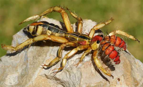 Гігантський павук-верблюд живе в Єгипті та інших країнах сходу. Незважаючи на всі міфи і чутки, насправді ця комаха має розмір всього 15 см. Насправді павук-верблюд навіть і не павук, а сальпуга, що є окремим загоном, що відноситься до класу павукоподібних. Тіло сольпуги складається з живота та головогруди з великими хеліцерами, які видають специфічний звук – стрекотіння. Павуки верблюда також називають єгипетським гігантом або скорпіоном вітру. Павуки-верблюди дуже швидкі та можуть бігати зі швидкістю 16 км/год. Ці пустельні жителі мають міцні щелепи, що за розміром складають третину довжини їхнього тіла. Для людини укус сальпуги не смертельний, не дуже болісний. Як і інші види павуків, павук-верблюд також упорскують у тіло жертви травні соки. Інтернет сенсацією павук-верблюд став під час воєнних дій в Іраку. Тоді мережі почали розповідати про особливу кровожерливість цих комах і публікувати жахливі фотографії, де створювалося враження того, що сальпуга має розмір у половину зростання дорослої людини.