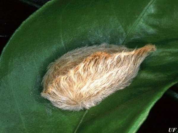 Ще один дивний вид комах, які виглядають дуже дивно в «підлітковому» періоді. Гусениця такого метелика виглядає, як шматок повсті, який хтось випадково впустив. Крім того, всі ворсинки цієї гусениці надзвичайно отруйні, тому краще їх не чіпати – буде дуже боляче. Все може закінчитися лікарняним ліжком.