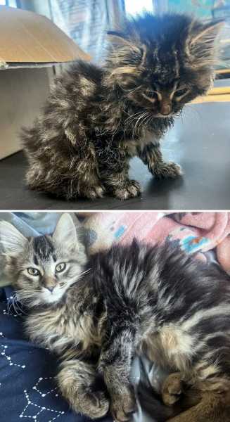 «Я знайшов цю бідну дитину на холоді, вона поводилася дуже мляво, і не був упевнений, що з нею все гаразд. На щастя, все закінчилося благополучно. До і після»