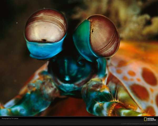 Один із найбільших креветок-богомолів. Він близько 14 см завдовжки, а найбільші особи мають розміри до 18 см. (Фото Tim Laman):
