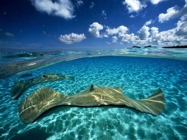 Скати відносяться до риб, і більшість із них живе у морській воді. Особливою зброєю наділений загін електричних скатів, які можуть паралізувати видобуток електричними розрядами від 60 до 230 вольт та понад 30 ампер. Фотографія з групи островів Туамоту в Тихому океані, що відноситься до Французької Полінезії. (Фото David Doubilet):