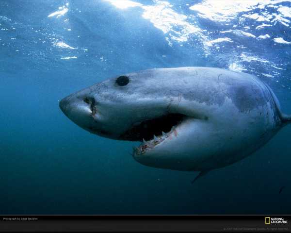 Досягаючи довжини понад 6 метрів та маси 2 3000 кг, велика біла акула є найбільшою сучасною хижою рибою. (Фото David Doubilet):