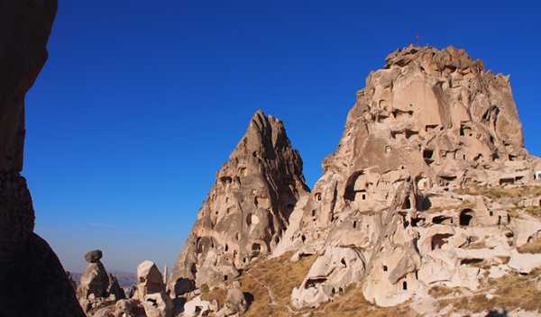 Сотні маленьких кімнат видовбані у схилах гори Учісар — найвищої точки Каппадокії. Кімнати з'єднані тунелями та проходами, але більшість із них зараз зруйнована.