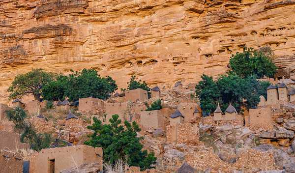 Традиційні села наздоганяння в Бандіагара стратегічно розташовані високо над рівнинами, оточені крутими ущелинами. Зараз Бандіагара є улюбленим місцем скелелазів.