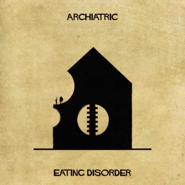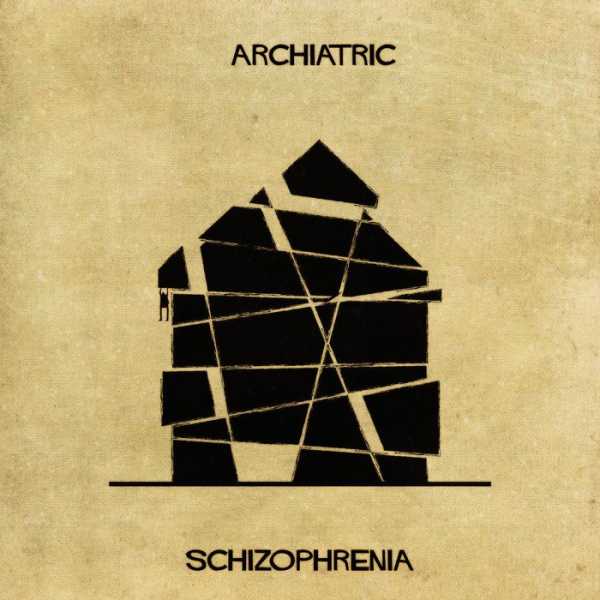 Італійський дизайнер та художник Федеріко Бабіна у своєму новому проекті Archiatric показав 16 психічних захворювань з погляду архітектури — через призму різних експлуатаційних станів одного й того самого будинку.