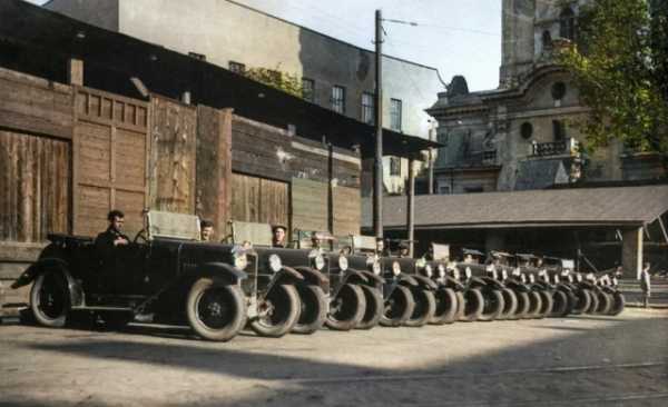 Колона поштових автомобілів за Меншиковою вежею, 1928 рік.