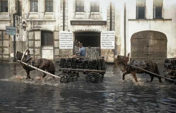 Повінь біля міської станції Московсько-Білорусько-Балтійської залізниці. Москва, 1926 рік.