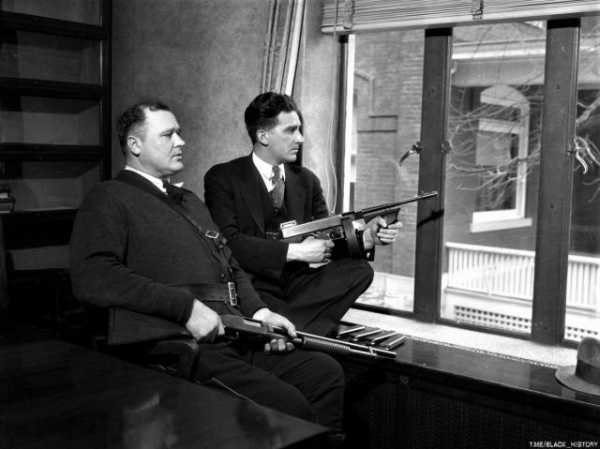 Поліцейські охороняють будівлю суду під час процесу над знаменитим грабіжником банків Джоном Діллінджером, 30 січня 1934 року.
