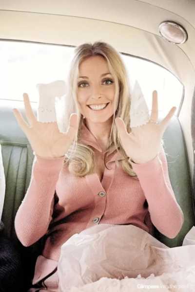 Шерон Тейт демонструє нещодавно куплений дитячий одяг, 1969 рік