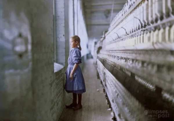 10-річна прядильниця дивиться у вікно бавовняної фабрики, на якій вона працює понад рік. Лінкольнтон, Північна Кароліна. Листопад 1908 року