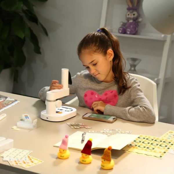 Мікроскоп — ще один цінний подарунок, що розвиває, який порадує дитину і одночасно забезпечить її розвиток. Цей інструмент також використовується для проведення власних досліджень, але на мінімальному рівні, тобто вивчення найдрібніших елементів навколишнього світу. Робота з мікроскопом потребує терпіння і концентрації, що, безперечно, позитивно позначиться і на інших сферах життя дитини — перш за все, дозволить їй ефективніше використовувати час, що витрачається на уроки в школі. Дуже важливою є й можливість навчання критичного мислення — адже саме від достовірності дослідження залежать кінцеві результати.