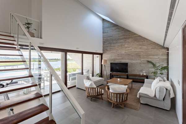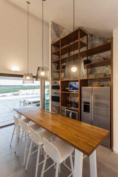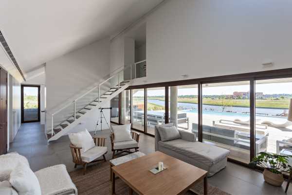 Об'єкт демонструє красу та надійність бетону, не упускаючи з уваги присутність натурального дерева. Елементи фасадів різноманітні відповідно до функціональних потреб – вони відкриваються та закриваються, є непрозорими або перфорованими. Внутрішнє місце будинку має чіткий поділ на програмні зони. Перший поверх займає простора соціальна зона відкритого планування – вітальня, їдальня та кухня. Велика площа скління дозволяє милуватися красою річки та навколишньої природи. Сектор послуг доповнює основні зони через бічний коридор. На верхньому поверсі розташована приватна зона з трьома спальнями з видом на річку. Розсувні скляні двері поєднують громадську зону з розкішною терасою з басейном. Дві бічні зовнішні сходи пов'язують будинок із землею та забезпечують вихід до річки.