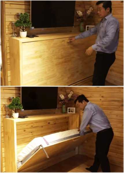 Тумба-трансформер ховає додаткове спальне місце і є звичною поличкою. | Фото: cpykami.ru.