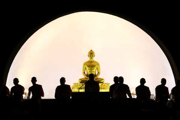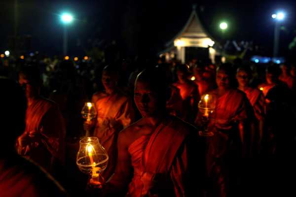 Одними ліхтариками фестиваль Йі Пенґ не обмежується. Це ченці зі свічками в місті Чіангмай, 14 листопада 2016 року.