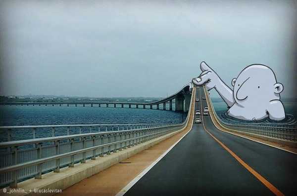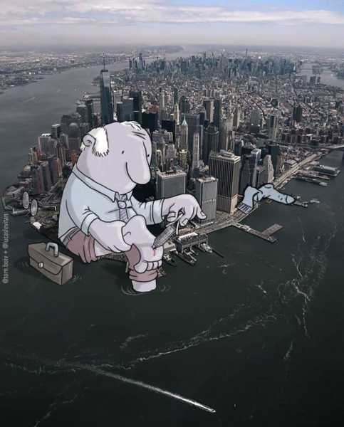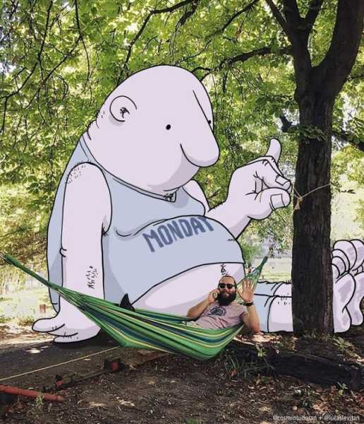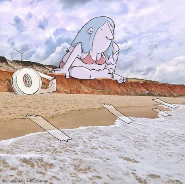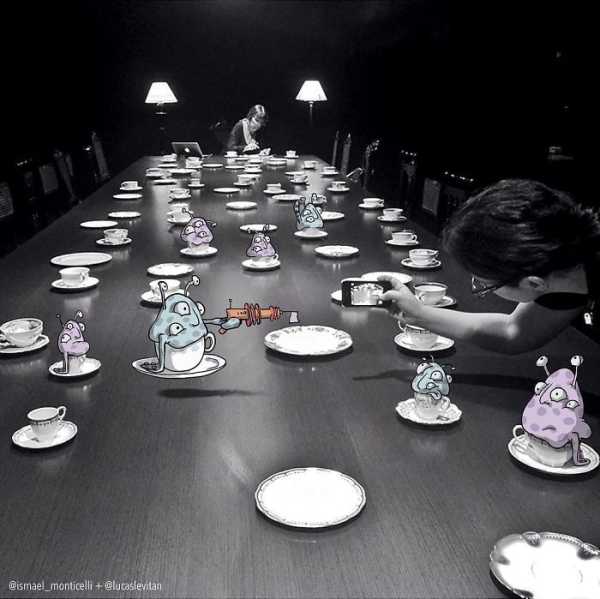 Хобі бразильського художника Лукаса Левітана (Lucas Levitan) – додавання кумедних персонажів на звичайні фото, які він бере з Instagram. Свій проект Лукас назвав Photo Invasion (“Фото вторгнення”). Далі деякі роботи з цього проекту.