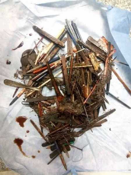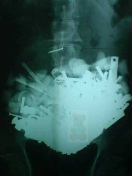 Ще один випадок незвичайних кулінарних переваг, наслідки яких доводиться розгрібати медикам. До лікарні надійшов пацієнт зі скаргами на дискомфорт у животі, викликаний, як виявилося, цілою колекцією металевих предметів, що осіли всередині. Улов настільки багатий, що можна йти до пункту прийому металобрухту.