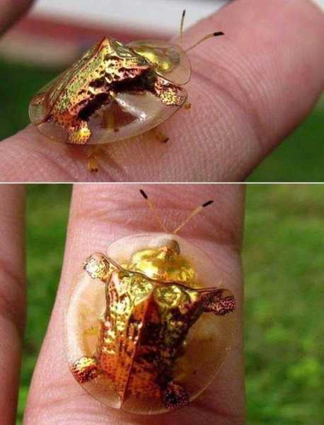 Оболонка у вигляді панцира черепахи не лише надає дивовижності цьому жуку, а й непогано захищає його від недоброзичливців.