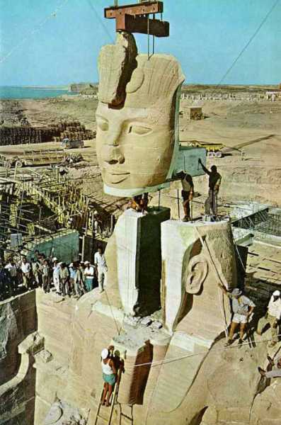З усіма необхідними запобіжними заходами обидва храми були розпиляні тонкими пилками на 1036 блоків, кожен з яких важив від 5 до 20 тонн. Вся споруда була пересунута на 200 метрів далі від річки та на 65 метрів вище.