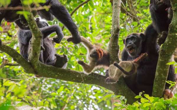 Журнал National Geographic малює страшну картину в статті, присвяченій агресивності африканських шимпанзе. На заході Уганди розкинувся фронтир — родючі землі, які нещодавно відвойовані біля лісу і стали притулком для тисяч поселенців. Але різкі зміни, насамперед скорочення лісів, викликали жорстокий відгук диких приматів. Позбавлені своїх хащів шимпанзе надають людям відчайдушний опір. Вийшовши з лісу, вони швидко навчилися жити за рахунок фермерів, попутно перетворюючи їхнє життя на жах.