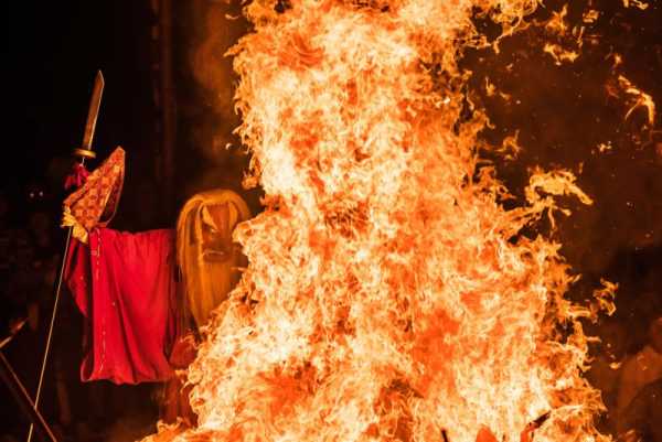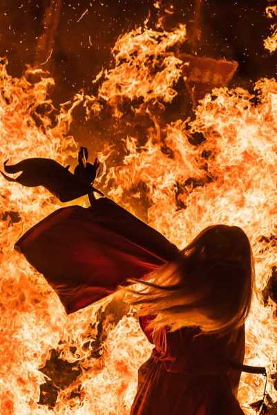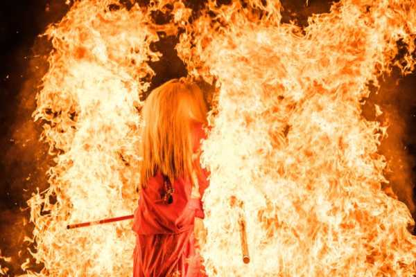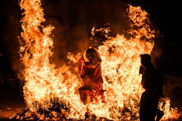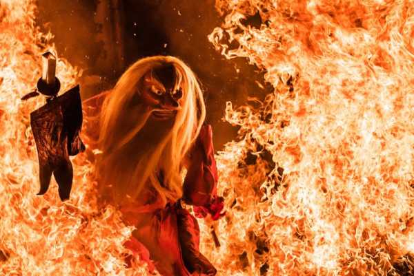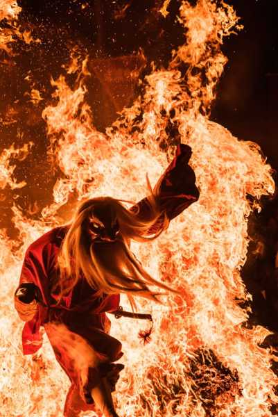 Японський дух вогню проходить крізь язики полум'я багаття