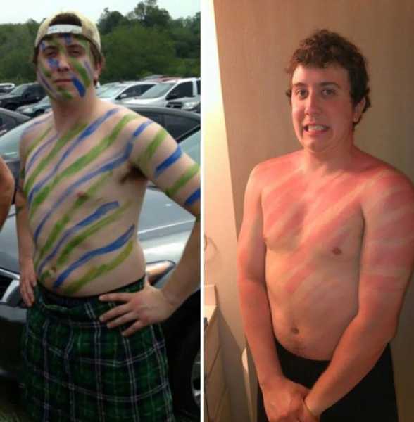 Літо вже не за горами і люди, які дуже скучили за сонячними ваннами, незабаром поїдуть відпочивати та засмагати під сонечком. Але з ультрафіолетом жарти погані. Пристрасне бажання отримати гарний відтінок засмаги нерідко обертається повним фіаско. Герої цієї добірки вже забезпечили собі тиждень безсонних та болісних ночей. І само собою, бідолахи поставили себе в дуже незручне становище.