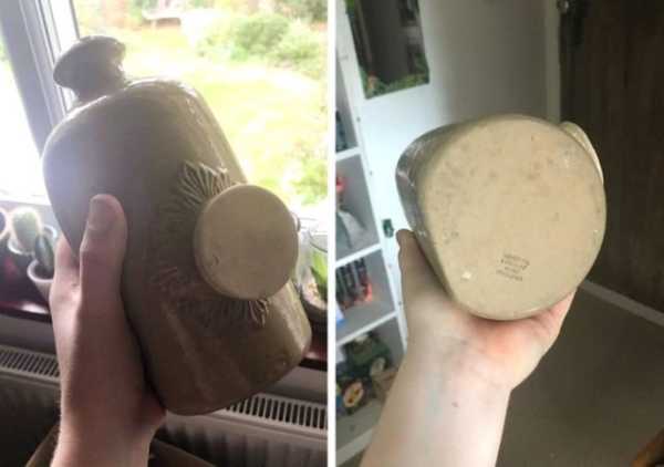 Якийсь дивний горщик. У нього плоске дно і одна із сторін і навіть є пробка.