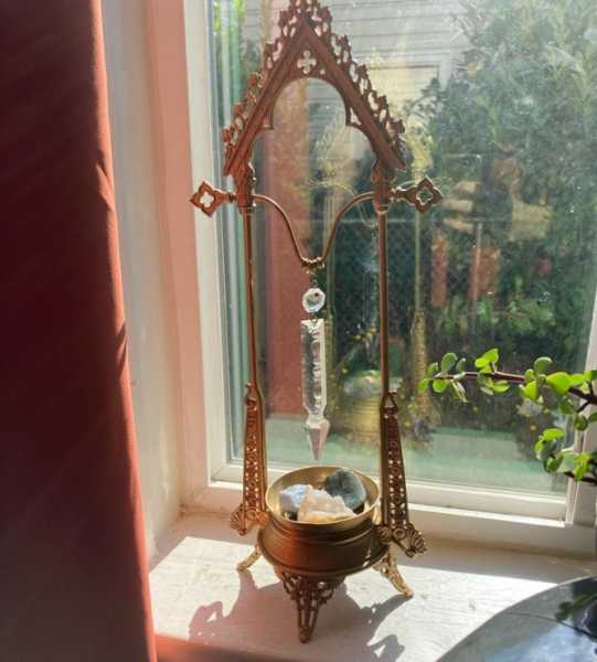 Це енергетичний кристал доби нью-ейдж. Центральний кристал узятий з настільної лампи, а решта — деталі різних свічників.