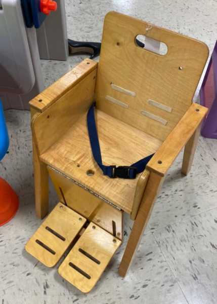 Це спеціальне крісло для малечі. Допомагає привчити дитину до правильної сидячої пози.