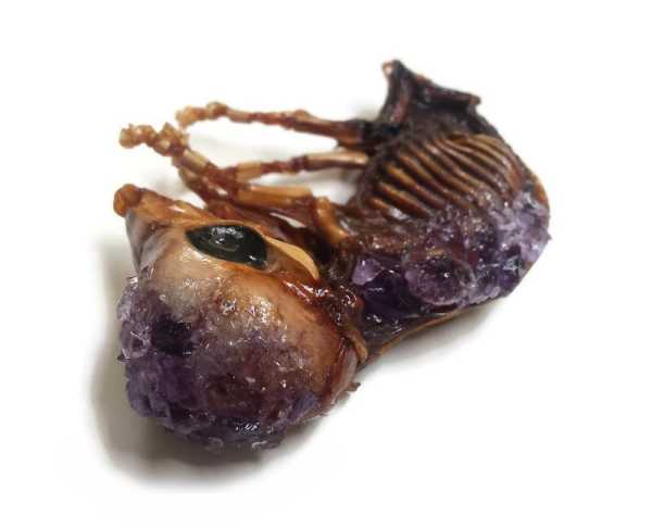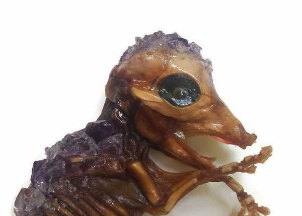 Дівчина з Північної Кароліни на ім'я Крістен Джарвіс відкрила на Etsy власний магазинчик, де торгує біжутерією з кісток тварин. Серед браслетів та намистів зустрічаються особливі експонати. Такі, як цей залакований зародок свині.